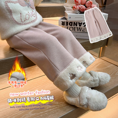 糖*童下载“猫咪刺绣毛边阔腿裤”图片包